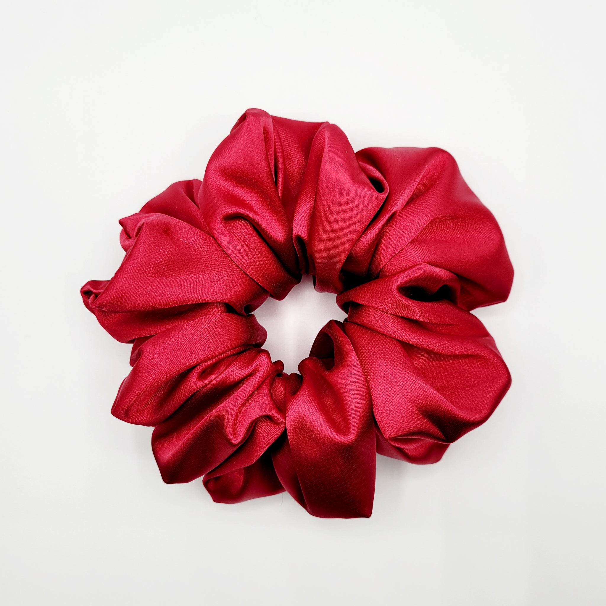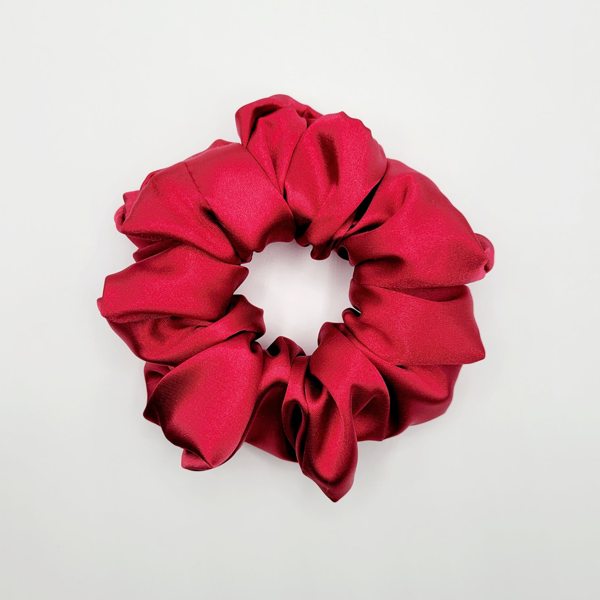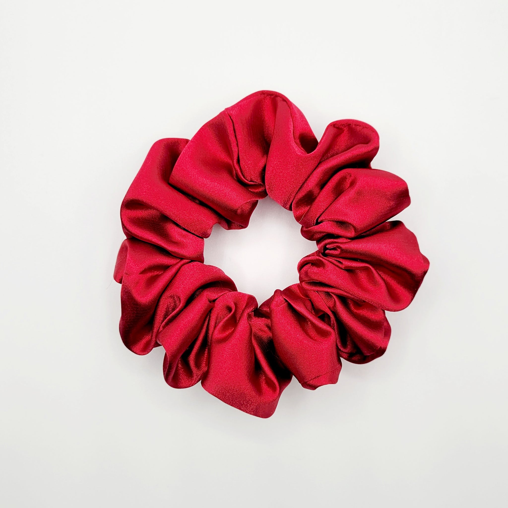 Voici le chouchou AMÉLIA! Un magnifique chouchou rouge cerise en satin. Offert en tailles petit, moyen, grand et EXTRA (XL).