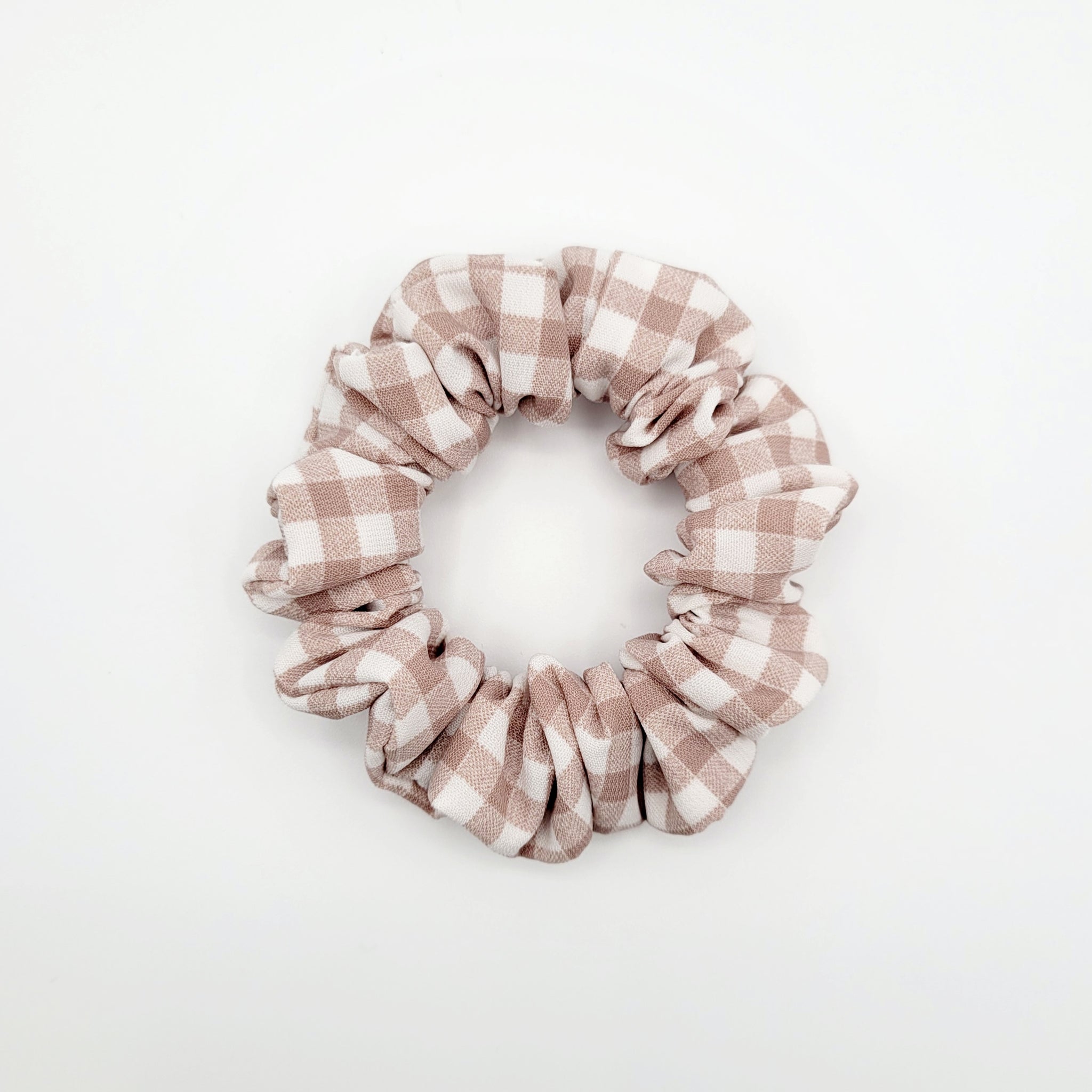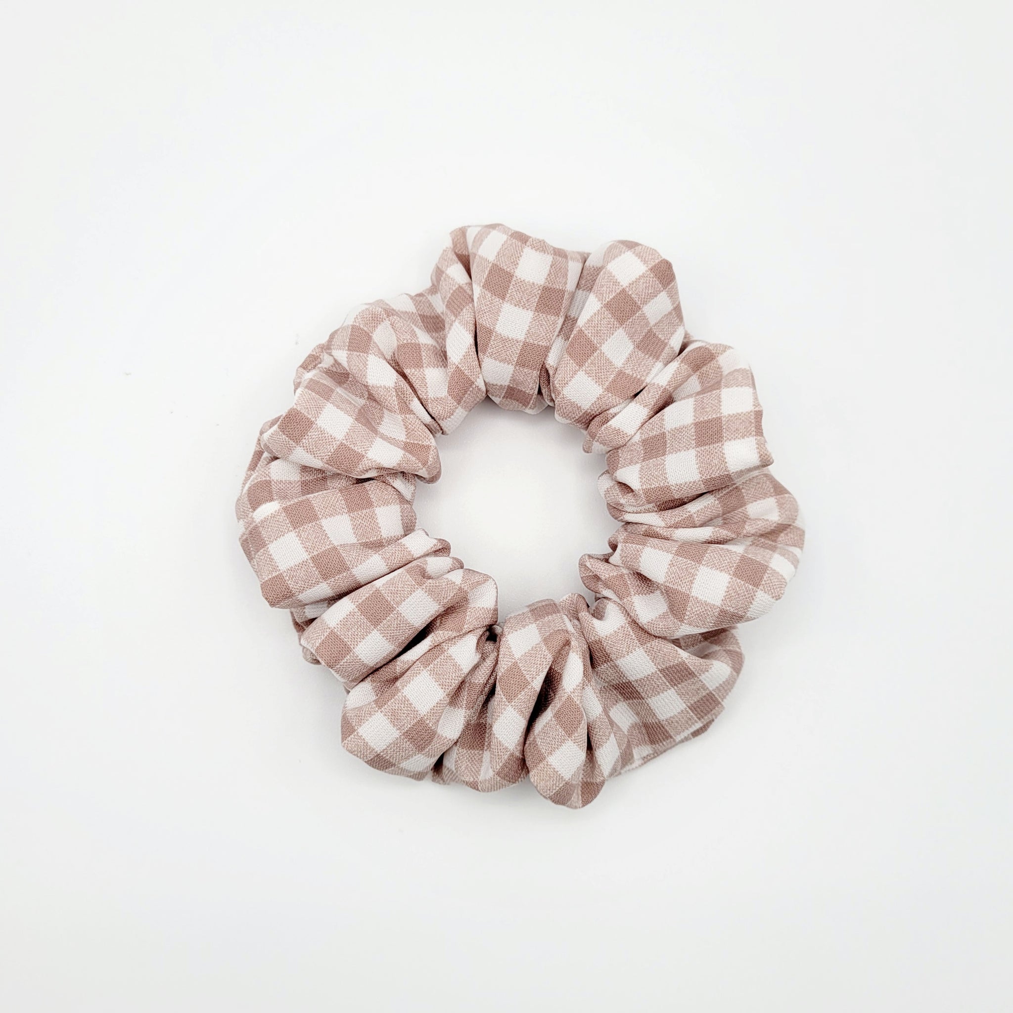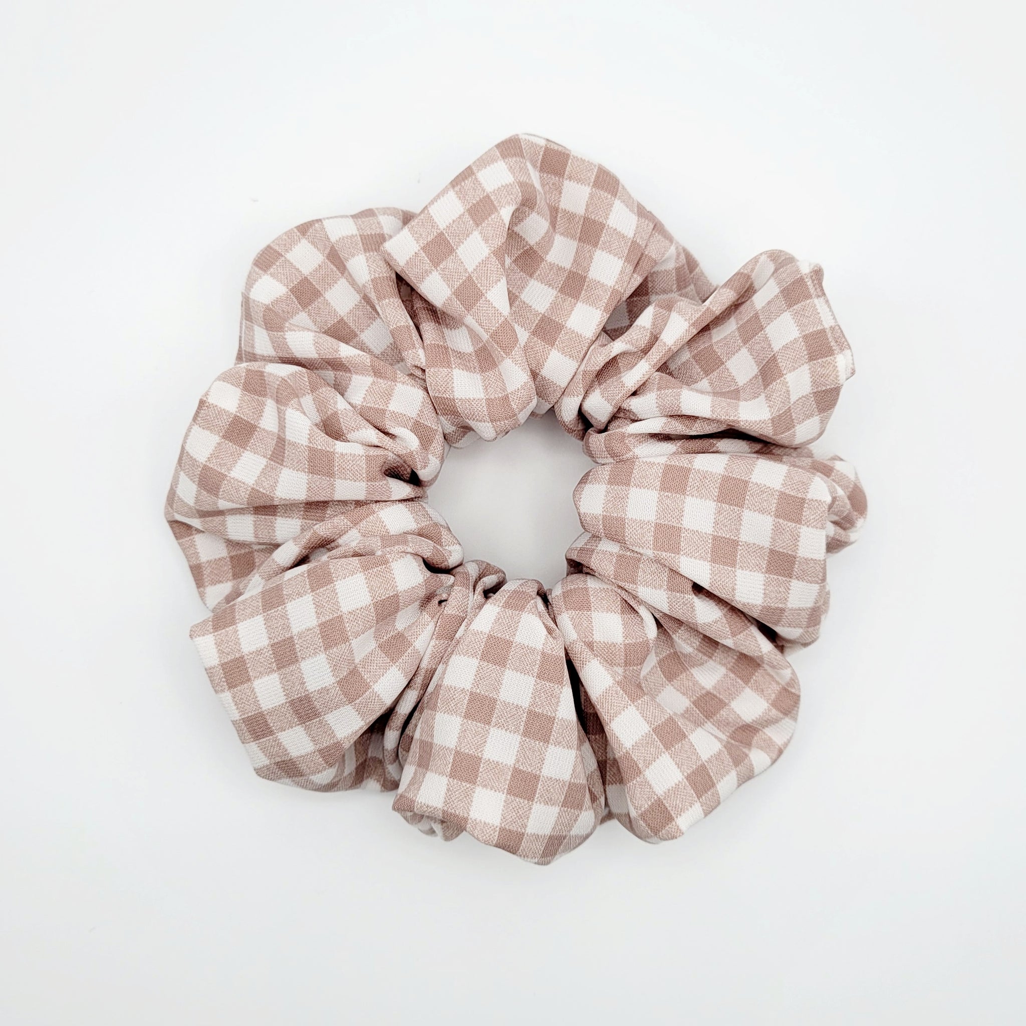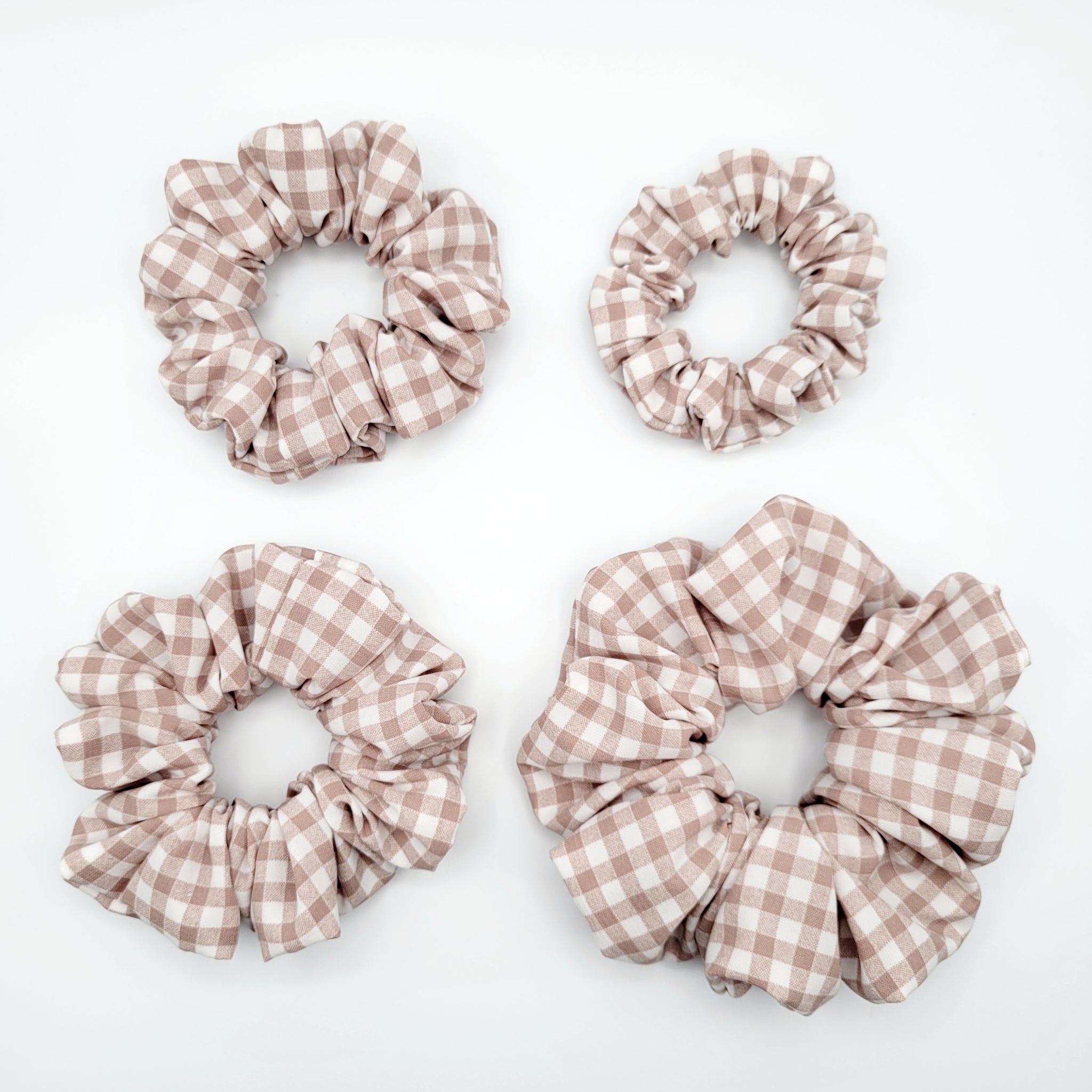 Voici le chouchou FLORENCE! Un magnifique chouchou rose cendré et blanc à carreaux. Offert en tailles petit, moyen, grand et EXTRA (XL).