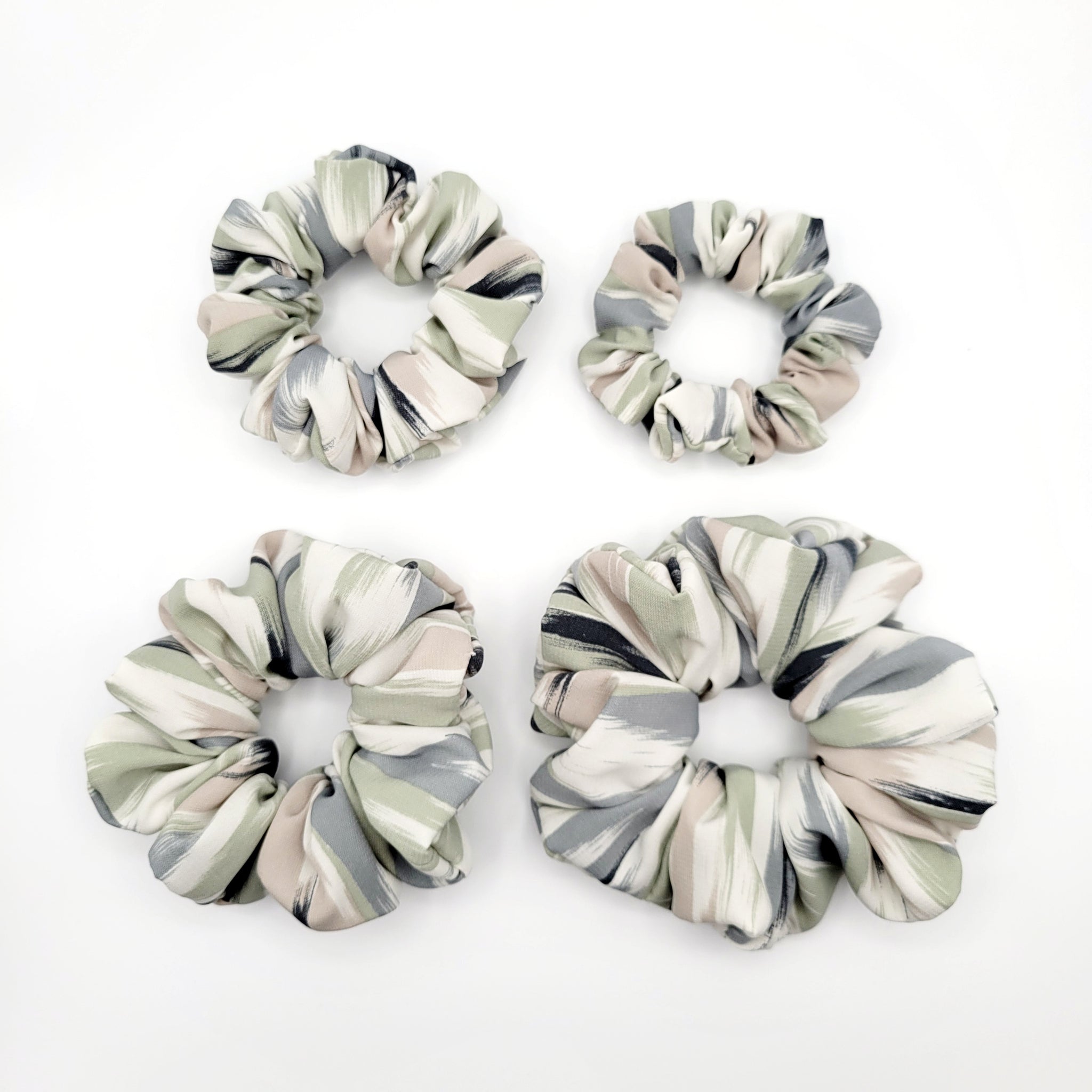 Voici le chouchou SIMONE! Un magnifique chouchou pastel à motif abstrait de style armée. Offert en tailles petit, moyen, grand et EXTRA (XL).