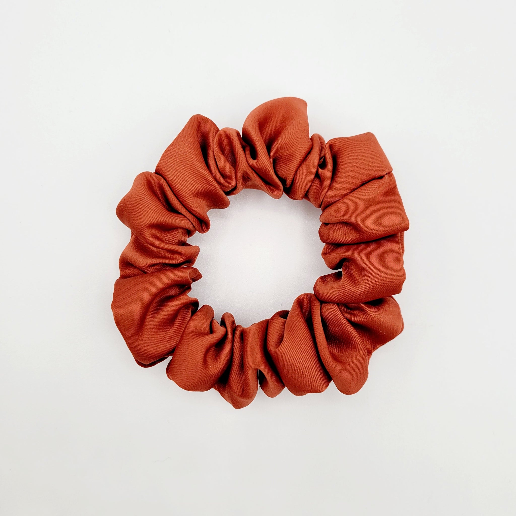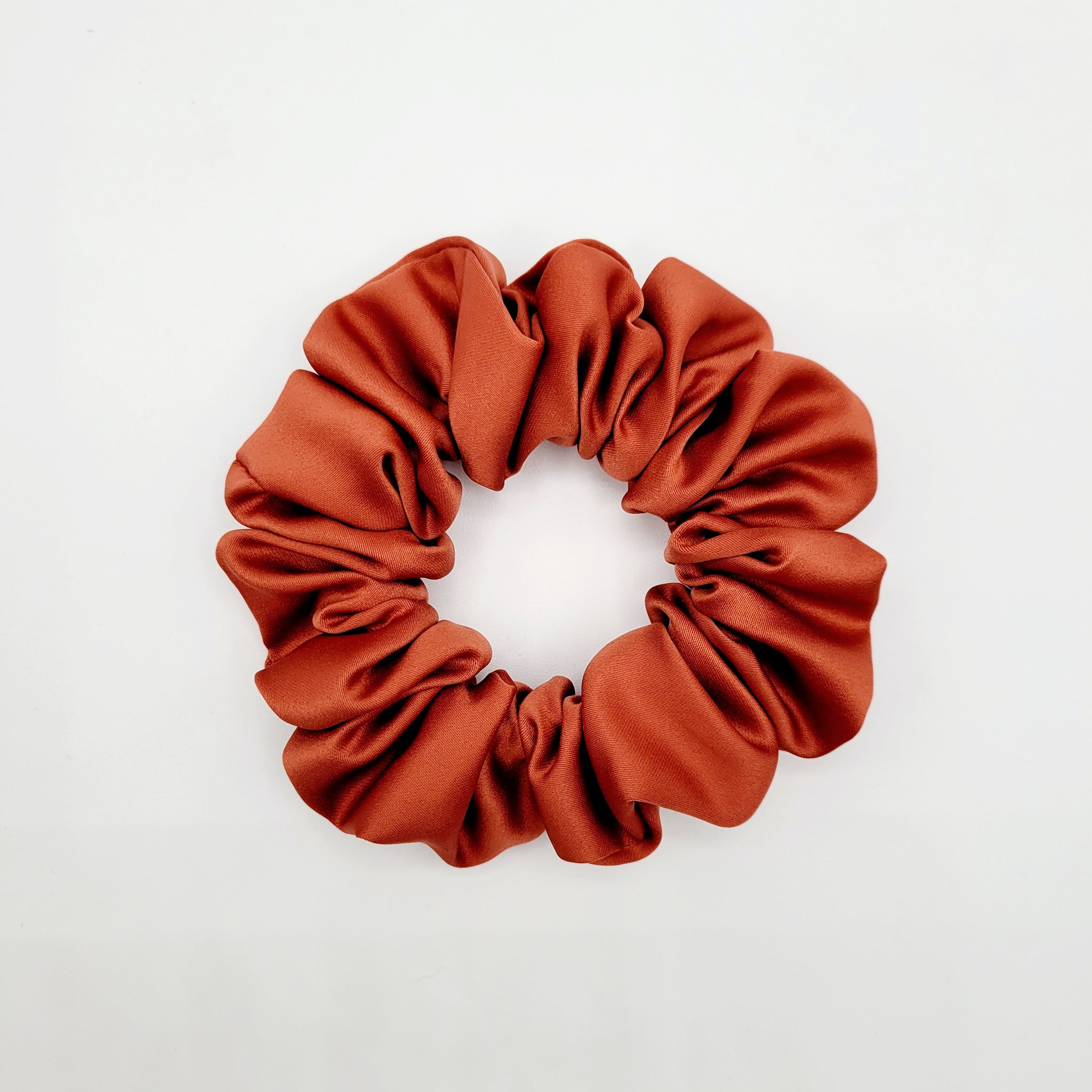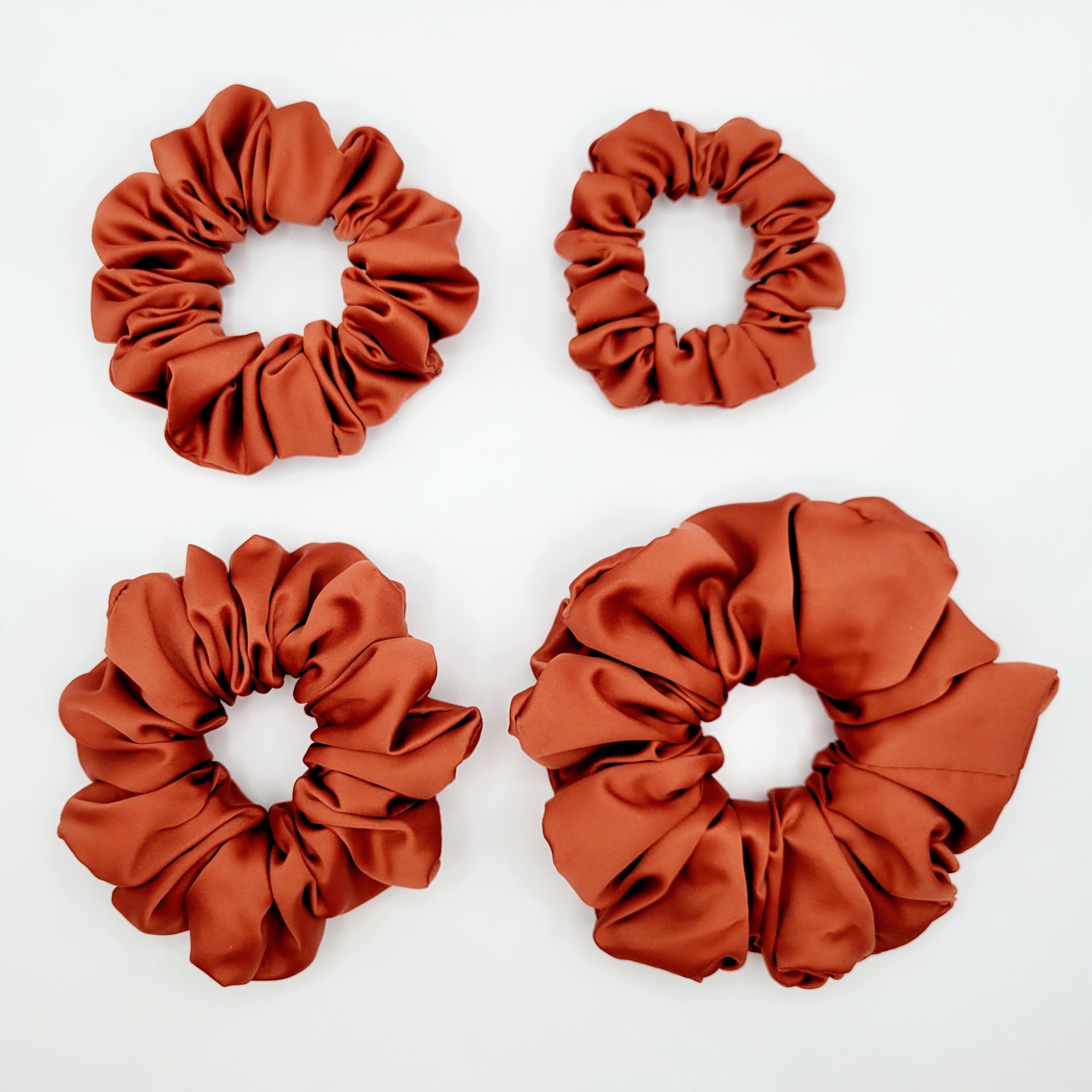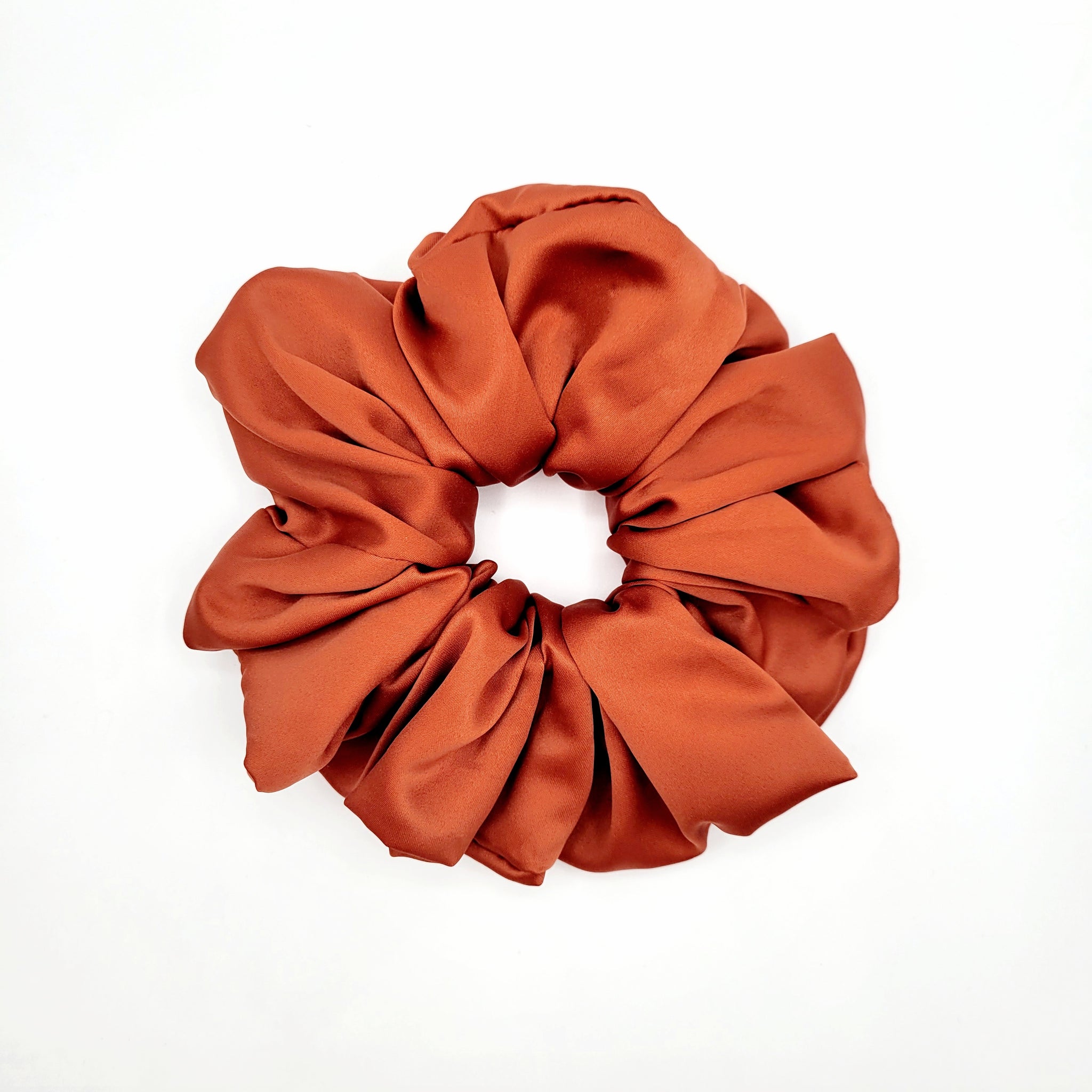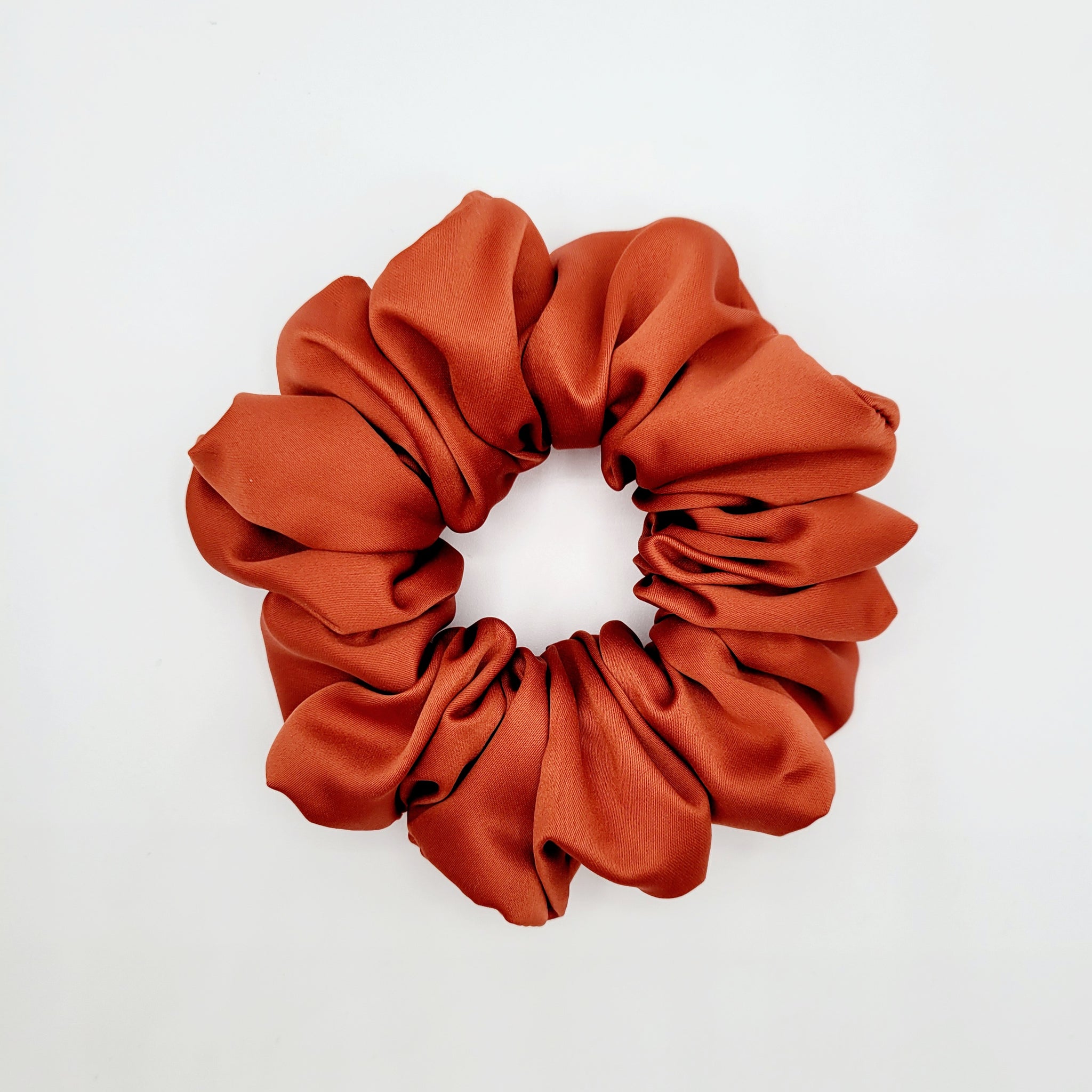 Voici le chouchou VALÉRIE! Un magnifique chouchou en satin rouge orangé. Offert en tailles petit, moyen, grand et EXTRA (XL)